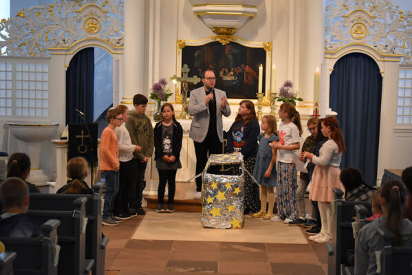 Die 4. Klassen haben ihre Grundschulzeit hinter sich gelassen und sich von der Grundschule Harpstedt verabscheidet. Im Gottesdienst ging es auf eine Zeitreise, bei der alle alle Höhepunkte wie Einschulung, Schulhofaktionstag oder Klassenfahrt nochmals vor Augen geführt wurden. Die Gottesdienst AG hatte zudem noch Fürbitten und Lieder vorbereitet.