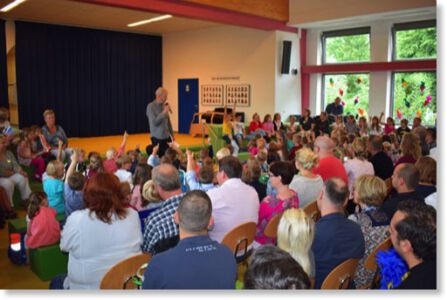 Der Schulleiter begrüßte die Kinder und deren Gäste.