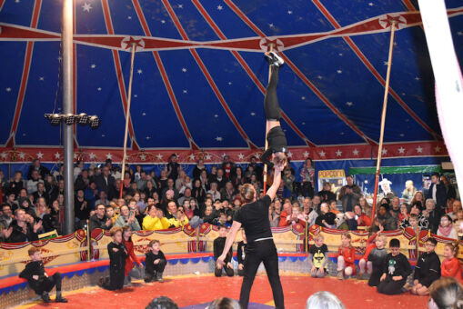 Leuchtende Kinderaugen, strahlende Gesichter, stolze Eltern und ganz viel Applaus. Das war der Lohn für eine Woche hartes Training im Mitmachzirkus Eldorado. Die Kinder durften täglich zwei Stundenin der gewählten Gruppe üben, um dann am Wochenende in der Zirkusmanegebei der großen Aufführung vor den Familien ihr Können zu präsentieren. Es wurde spektakulär am Boden, auf dem Trapez und auf Pferden geturnt, es gab lustige Clowns und eine fantastische Zaubershow, es wurden Kühe mit dem Lasso eingefangen und bis zu elf Drehteller gleichzeitig balanciert, die Cheerleader tanzten und schwangen die Hulahoopreifen und die Hunde vollbrachten tollkühne Kunststücke auf Kommando der Kinder.
