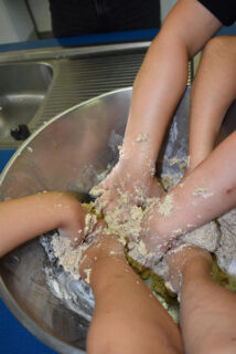 In dieser Woche besuchte uns das RUZ und arbeitete mit den 3. Klassen zum Thema „Vom Korn zum Brot“. Die Schülerinnen und Schüler arbeiteten zunächst in kleinen Gruppen an verschiedenen Stationen, wie zum Beispiel dem Mahlen von Korn. Nach einer Pause ging es dann an die Zubereitung von Marmelade, Aufstrich und Obstsalat. Außerdem wurde Teig geknetet und kleine Brötchen gebacken. Nach dem gemeinsamen Frühstück wurde alles wieder aufgeräumt und die Kinder verließen die Küche mit neuen Rezepten für Zuhause.