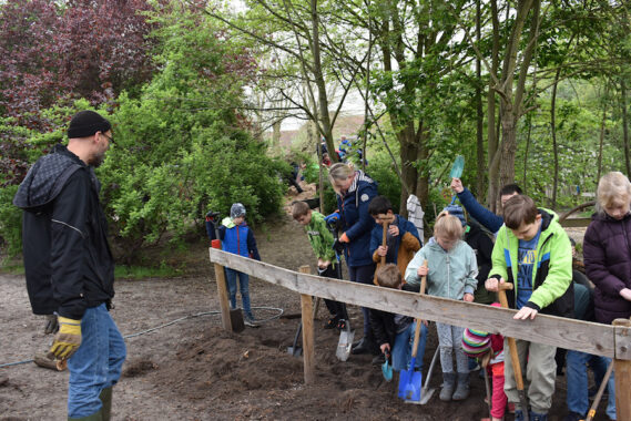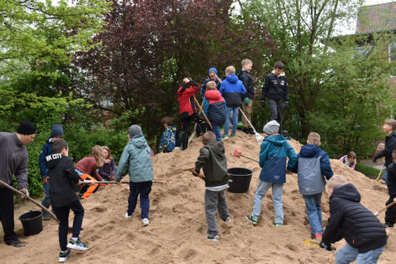 Der jährliche Schulhofaktionstag der Grundschule Harpstedt zeigte sich in diesem Jahr in neuem Gewand. Statt am Nachmittag wurde die Aktion testweise auf den Schulvormittag gelegt. So nahmen erwartungsgemäß weniger Eltern, aber dafür alle Schülerinnen und Schüler teil, da die Teilnahme sonst freiwillig war. Alle Kinder kümmerten sich also um die Pflege ihres eigenen Schulhofes. Es wurde von vielen fleißigen Händen eine Buchenhecke gepflanzt, viel Unkraut entfernt, Rindenmulch in den Beeten und Höhlen verteilt, der Sand in der Sandkiste aufgefüllt, die Kräuterspirale neu bepflanzt und Zäune erneuert.
