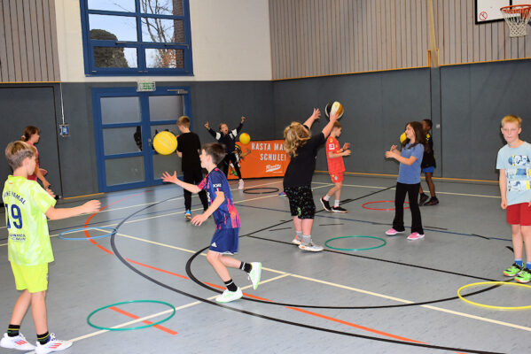 Der Basketballbundesligist Rasta Vechta hat über mehrere Schultage Trainingseinheiten mit allen Klassen durchgeführt. Hier wurde auf spielerische Art und Weise die Bewegung in den Vordergrund gestellt, um einen gesunden Ausgleich zum sitzenden Alltag zu fördern. Durch kleine Spiele miteinander aber auch gegeneinander wurden zudem soziale Interaktion und Teamgeist gestärkt. Die Kinder waren mit vollem Einsatz dabei und wurden dafür mit einer Freikarte für ein Spiel im Rastadome belohnt. Einige Talente wurden auch zum Probetraining nach Vechta eingeladen.