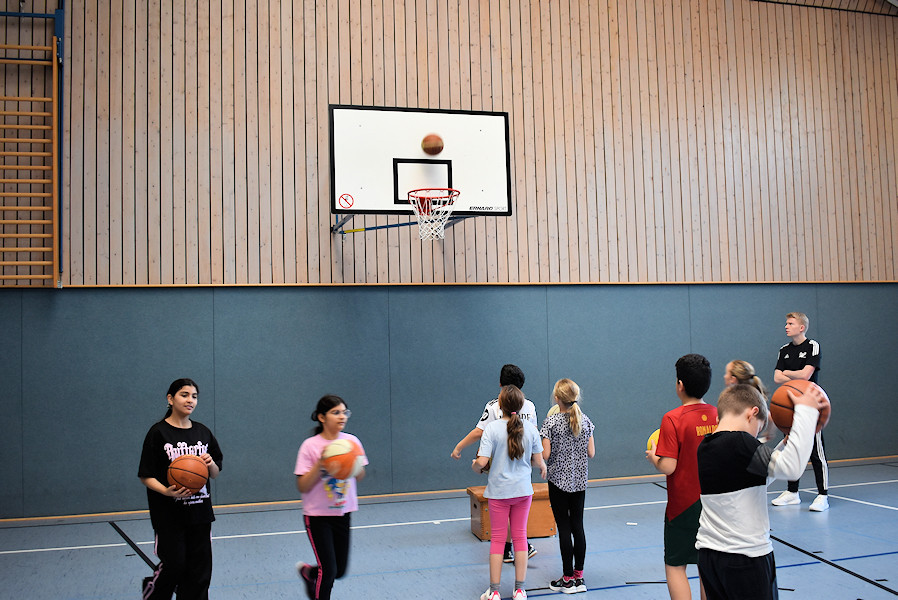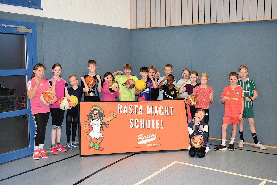Der Basketballbundesligist Rasta Vechta hat über mehrere Schultage Trainingseinheiten mit allen Klassen durchgeführt. Hier wurde auf spielerische Art und Weise die Bewegung in den Vordergrund gestellt, um einen gesunden Ausgleich zum sitzenden Alltag zu fördern. Durch kleine Spiele miteinander aber auch gegeneinander wurden zudem soziale Interaktion und Teamgeist gestärkt. Die Kinder waren mit vollem Einsatz dabei und wurden dafür mit einer Freikarte für ein Spiel im Rastadome belohnt. Einige Talente wurden auch zum Probetraining nach Vechta eingeladen.